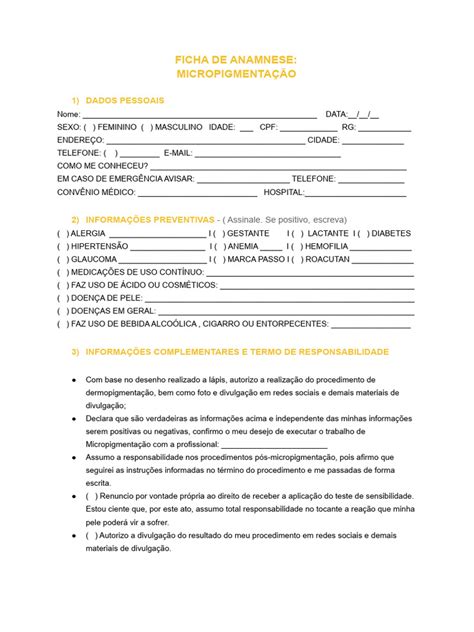Arquivo digital, ficha de anamnese para micropigmentação. *Envio em pdf e JPG IMPORTANTE: ENVIAMOS ATRAVÉS DE LINK EM PASTA compactada EM WINRAR PARA SEREM BAIXADOS.
