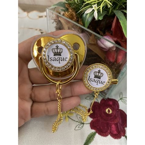 Chupeta personalizada com nome do bebê + Prendedor É muita delicadeza Está chupeta de strass cristal é totalmente deslumbrante e lindo que vai chamar atenção e vai realmente fazer do seu bebê o centro das atenções.