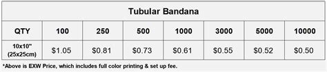 This 20"x10" polyester tubular bandana /sports headband is multi-functional. It comes with 1 color imprint and 1 background color. This product has unsewn edges. If you are looking for a finished edge, our full color 2-ply tubedana provides this option.