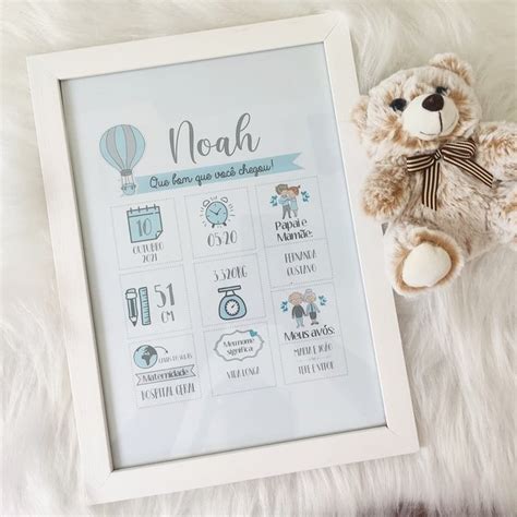 - Fundo personalizado com nome da criança, juntamente com as informações do nascimento : Nome, Data, hora, peso, altura e cidade natal (preferencialmente abreviada); - Fotos impressas e anexadas ao quadro (quantidade referente a descrição do produto).