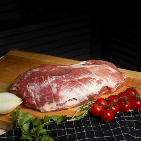 Baixe essa foto Premium de Carne de porco crua variada, corte de partes diferentes. Proteína animal fresca, especiarias, vegetais. Luz dura na moda, sombra escura. Fundo de concreto de pedra cósmica, copie o espaço e descubra milhões de fotos profissionais no Freepik.