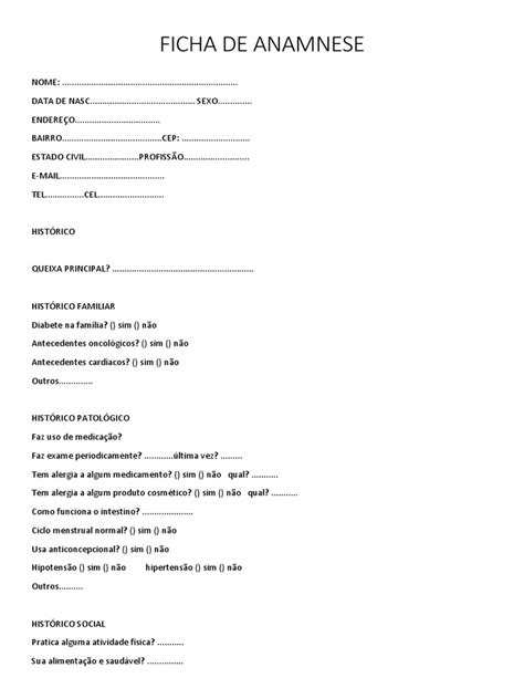 Download Modelo De Ficha De Anamnese Alta Resolução CDR